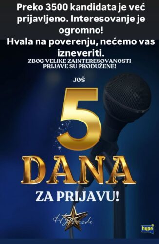Nije tajna da je veliko interesovanje za muzičko takmičenje. Ostalo je još PET DANA do kraja prijave, a možete se prijaviti putem OVOG LINKA.