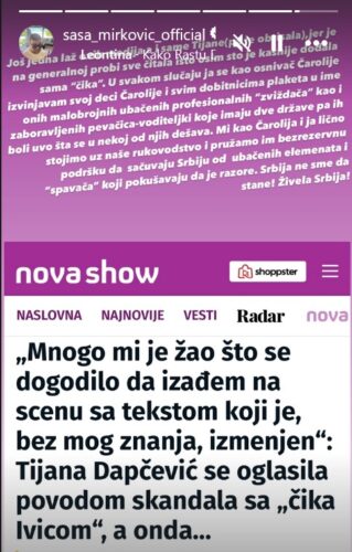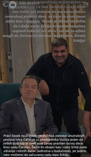 Podsetimo, Saša Mirković se danas obratio i na svom zvaničnom instagram nalogu Ministru unutrašnjih poslova Ivici Dačiću.