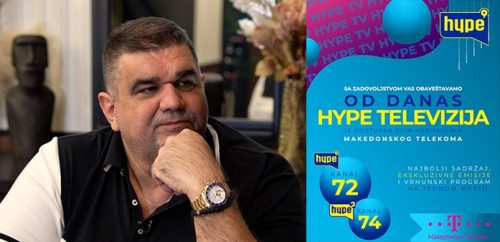 SAŠA MIRKOVIĆ S PONOSOM NAJAVIO: „Od danas možete na Makedonskom Telekomu da pratite Hype televiziju na poziciji 72 i Hype 2 na poziciji 74. Kako se budemo širili tako ćemo da povećavamo i broj kanala“ Nakon što su televizijski kanali HYPE i HYPE 2 od danas dostupni svim korisnicima mreže Makedonskog Telekoma, oglasio se vlasnik … Nastavi sa čitanjem SAŠA MIRKOVIĆ S PONOSOM NAJAVIO: „Od danas možete na Makedonskom Telekomu da pratite Hype televiziju na poziciji 72 i Hype 2 na poziciji 74. Kako se budemo širili tako ćemo da povećavamo i broj kanala“