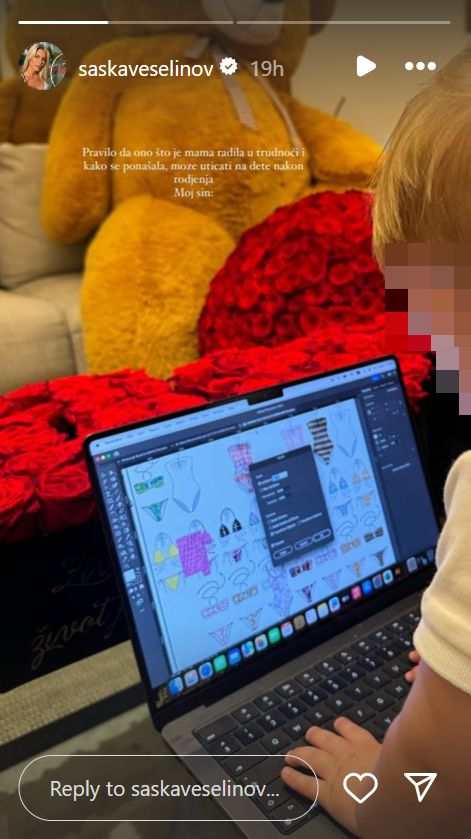 „Pravilo da ono što je mama radila u trudnoći i kako se ponaša – može uticati na dete nakon rođenja. Moj sin“, napisala je Saška uz fotografiju na Insta storiju.