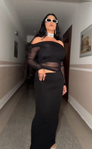 Bila je u uskoj, crnoj odevnoj kombinaciji, a donji deo je, dok se snimala za Instagram, zavodljivo spuštala, što se dopalo mnogima.