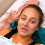 Zatvoreni, ali tesni dekolte otkrio je bujno poprsje po kom je slavna glumica poznata. Haljina je nabrana na bokovima i asimetrična u donjem delu. Jedan deo je kraći, a drugi dužine do članaka. Uz atraktivnu svilenu haljinu jarko ljubičaste boje glumica je obula papuče sa platformom.
