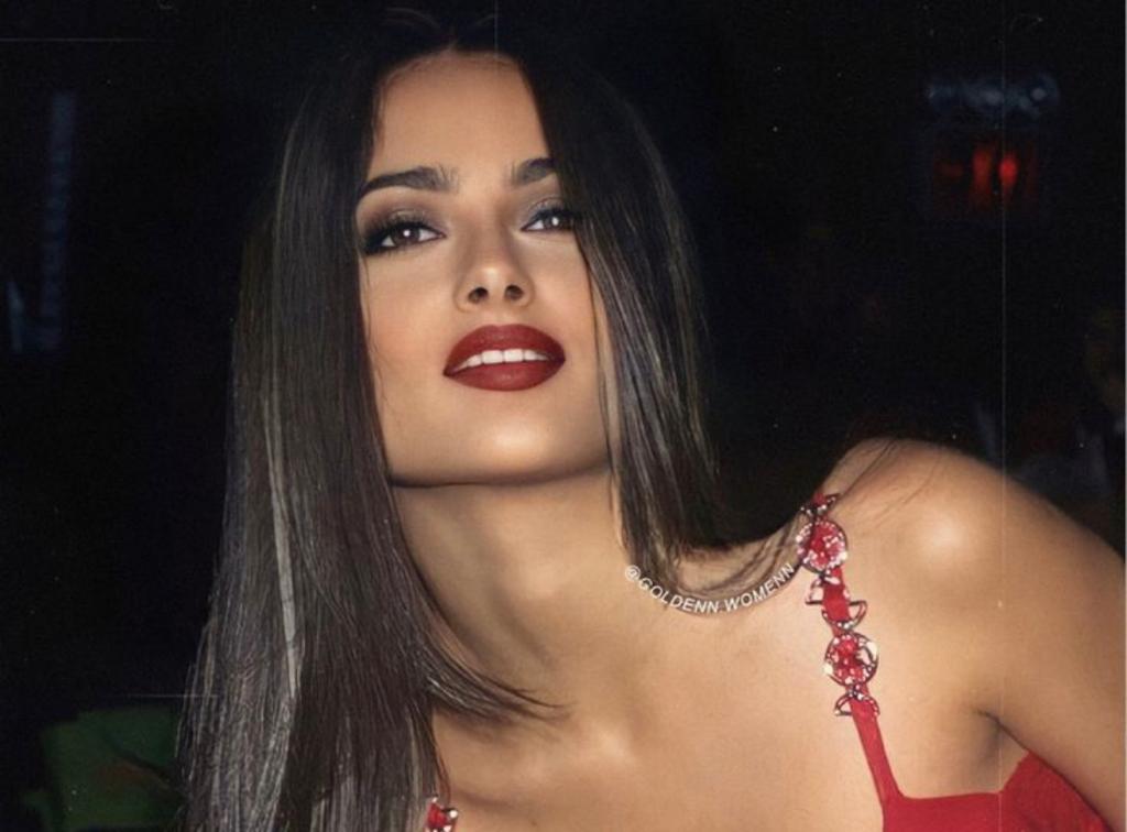 Izgled je dopunila tamnim lakom za nokte i malom, četvrtastom sjajnom torbicom koju je nosila u ruci. Crnu sjajnu dugu kosu je stilizovala tako da opušteno pada prelomljena u blagim talasima.