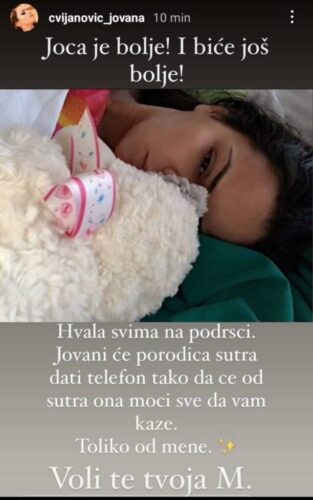„Trebalo je vremena da mi telo dođe sebi. Sutradan uveče sam se probudila, sada pijem terapiju redovno. Ne smem da se nerviram i vodiću računa pre svega o sebi. Navodi o tome da me neko prijavio i da mi je zato bilo loše su teška budalastina i laž!“, zaključila je Jovana za Hype TV.