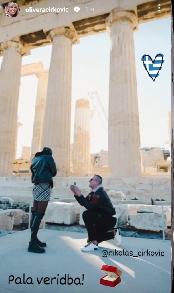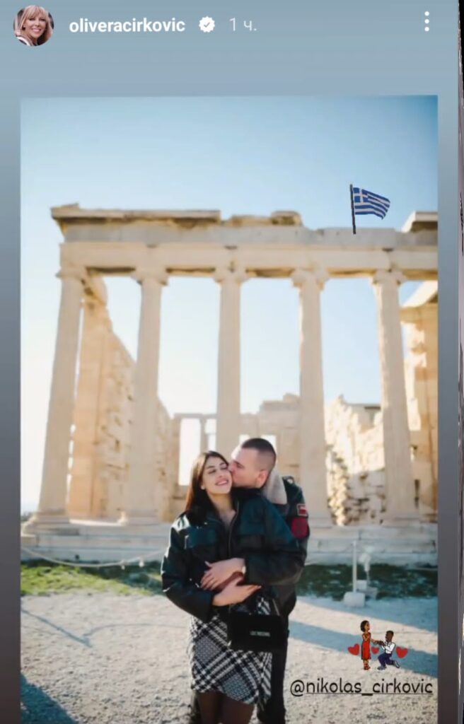 Olja je podelila fotografije svog sina Nikolasa Ćirkovića kako kleči i drži prsten ispred svoje izabranice sa tekstom „pala veridba“!