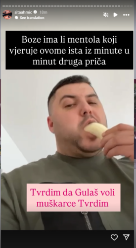 Sita Ahmić, sestra učesnice rijalitija Aneli Ahmić, podelila je na Instagram storiju snimak Asmina Durdžića uz tvrdnju da on „voli muškarce“.