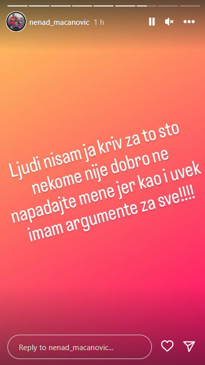 – Ljudi nisam ja kriv za to što nekome nije dobro, ne napadajte mene jer kao i uvek imam argumente za sve – napisao je Bebica i dodao: