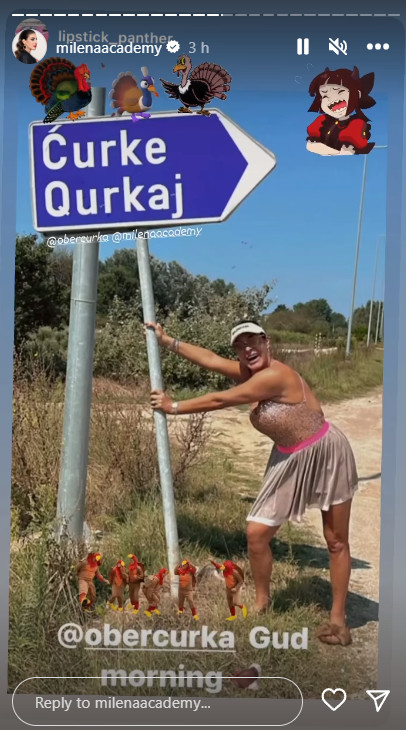 Milena je, sada objavila fotografiju sa letovanja na kojoj pozira pored znaka za mesto Ćurke.
