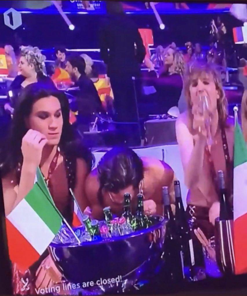 Odmah po završetku Evrovizije i pobede Italije, počeli su da kruže navodi da je frontmen grupe, Damian Dejvid, pred kamerama konzumirao opijate, a snimak na kojem se ne vidi jasno šta se odvija je preplavio društvene mreže.