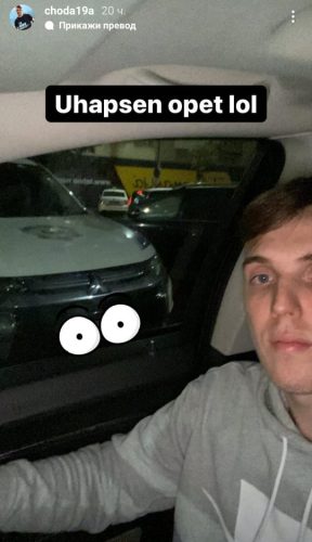 -Uhapšen opet! – napisao je Čoda na svom storiju. Ovog puta bio je sarkastičan.