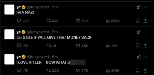 Reper Kanje Vest (47) ponovo je izazvao bes javnosti nakon što je u nizu skandaloznih objava na društvenim mrežama napisao: