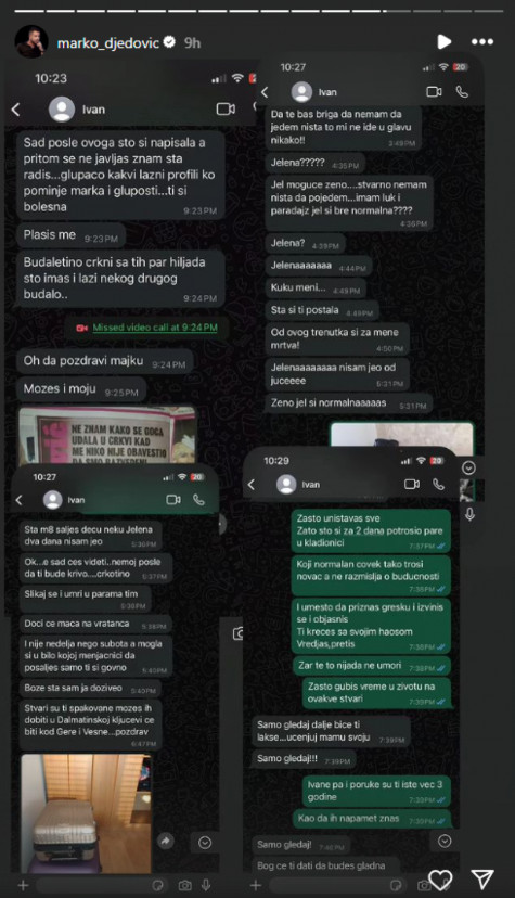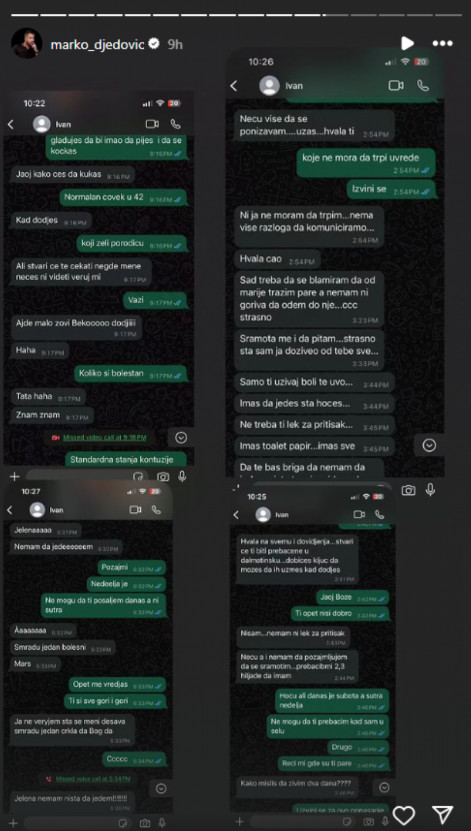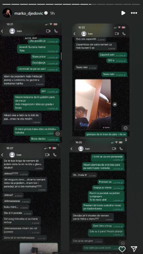 Na društvenoj mreži Instagram, Marko Đedović objavio je niz poruka između Ivana i Jelene u kojima Ivan ističe kako nema ni dinara, a od nje traži pozajmicu.