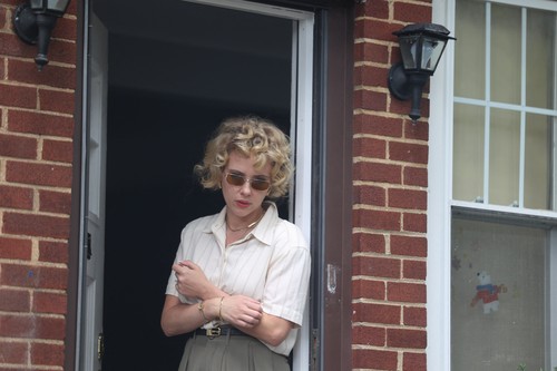 Johansonova je potom uspešno nastavila snimanje scene. Tog dana je nosila retro odeću. Bež blejzer preko bele košulje, koja je bila uvučena u maslinaste pantalone visokog struka. Izgled je upotpunila smeđim sandalama sa otvorenim prstima, bež torbom i zlatnim ogrlicama.