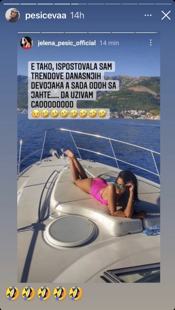 – E tako, ispoštovala sam trendove današnjih devojaka, a sad odoh sa jahte da uživam, ćao, napisala je ona.