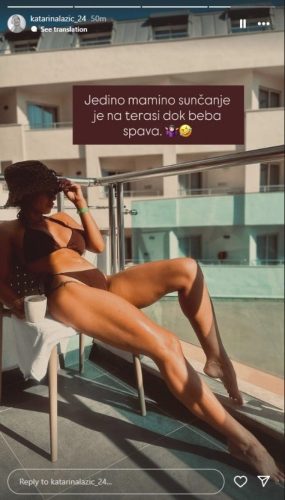 Ovoga puta Katarina je iskoristila vreme dok njena i Darkova ćerkica spava da se sunča na terasi, a fotografiju u bikiniju objavila je na Instagramu.