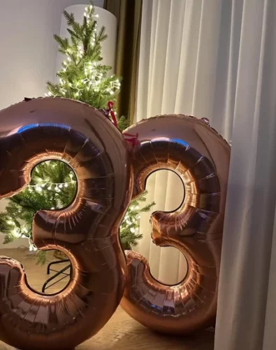 Tim povodom je na Instagramu objavila fotografiju iz stana u kom živi sa Ristovskim, gde vidimo ogromne balone u broju „33“ kao i jelku u ćošku koju su okitili za predstojeće praznike.