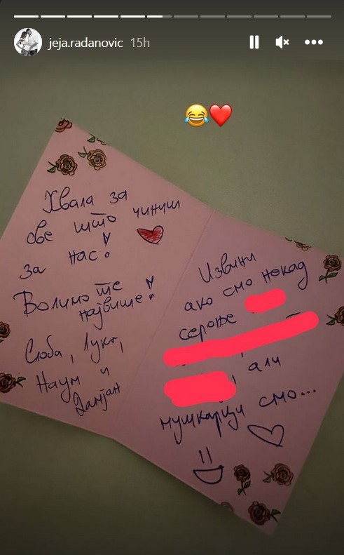 – Hvala za sve što činiš za nas! Volimo te najviše. Izvini ako smo nekad se*onje, ali muškarci smo – napisali su joj njeni momci.