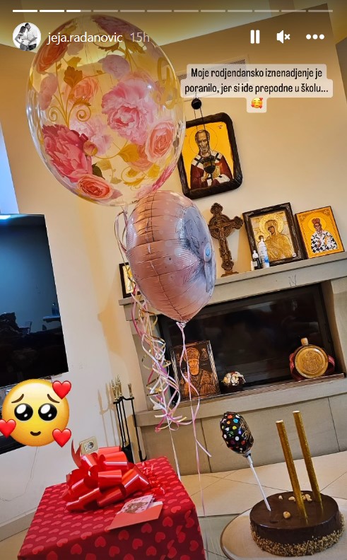 Jelena se pohvalila da je dobila poklone i da joj je najstariji sin česitao jutros rano jer je morao u školu. A sve je oduševila poruka koju je Jelena objavila, a u kojoj su joj Sloba i njeni sinovi na šaljiv način čestitali.