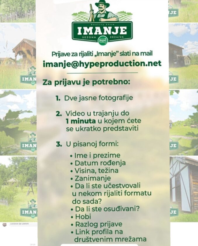 Kako da se prijaviš za učešće u rijalitiju „Imanje“: