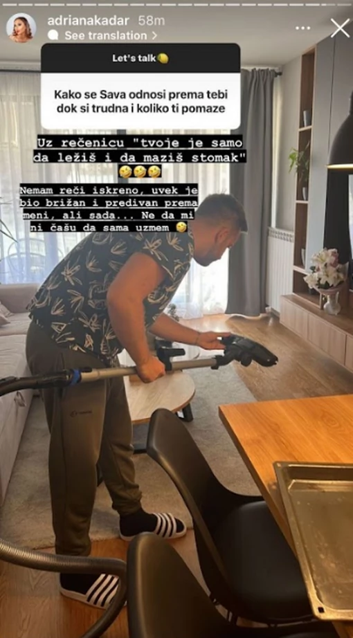 Naime, mlada influenserka, htela je da pokaže kako njen muž brine o njojm, pa je objavila fotku na kojoj se vidi kako Sava usisava kuću.