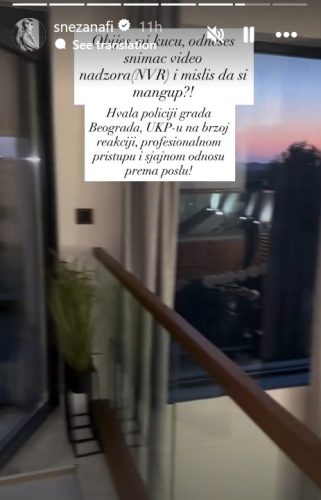 – Obiješ mi kuću odneseš snimak video nadzora i misliš da si mangup. Hvala policiji grada Beograda na brzoj reakciji i sjajnom odnosu prema poslu – napisala je Snežana Borjan na Instagramu.