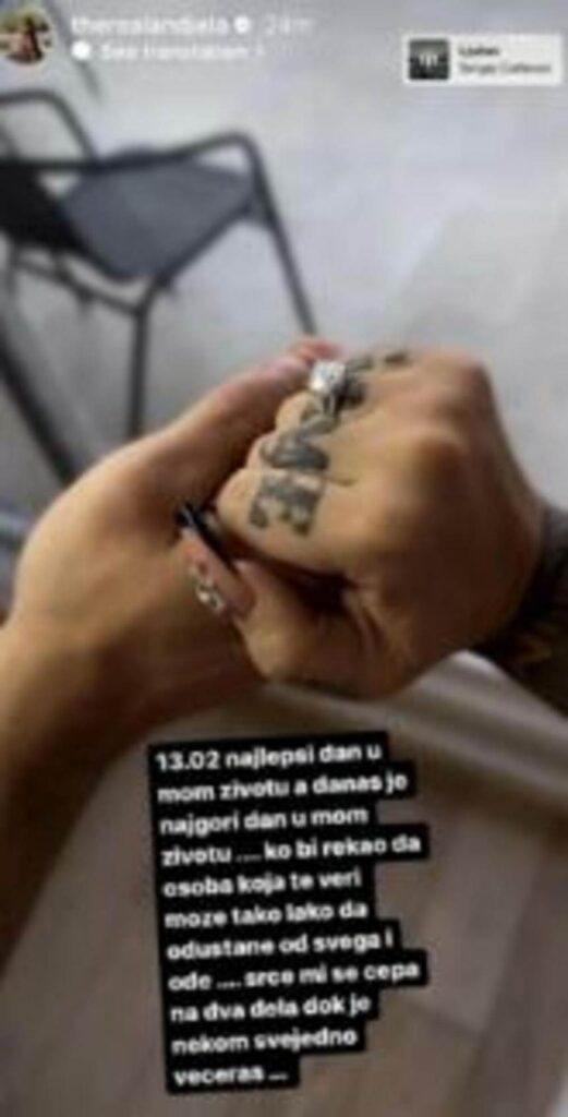 Ipak, sve je kratko trajalo, pa je Anđela u svojoj objavi napisala da joj se srce cepa na dva dela dok je nekome svejedno, dajući naslutiti da je ona ta koja je ostavljena.