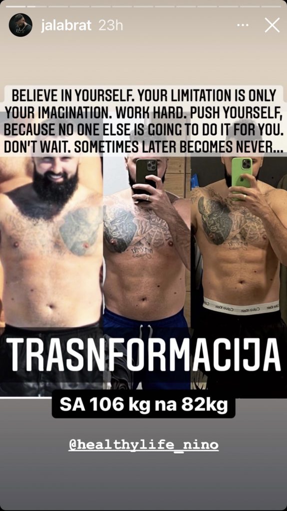 – Veruj u sebe. Tvoja organičenja su samo tvoja mašta. Radi jako, teraj sebe jer niko to neće učiniti za tebe osim tebe samog. Ne čekaj. Ponekad “kasnije” postane “nikad” – napisao je Džala uz ovu fotografiju motivacionu poruku za sve one koji su u sličnom problemu.