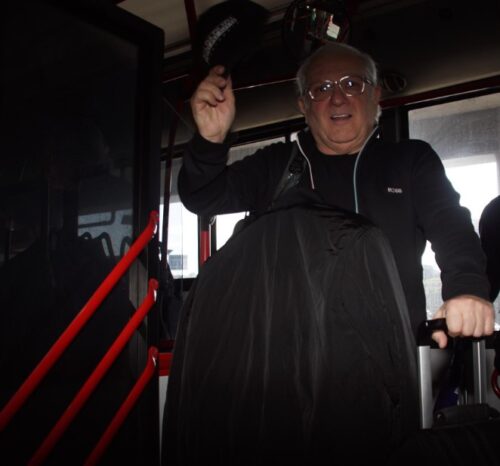 Prvo se držao za šipku i stajao sa sve koferom pored, a onda je odlučio da ipak sedne kao pravi pravcati putnik, jer je put sa aerodroma do centra grada poprilično dug. Izgleda da je Samardžić odučio da malo prištedi, pa umesto sa taksijem do grada je krenuo gradskim autobusom. Što bi se reklo kao sav normalan svet.