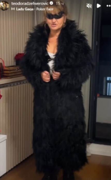 Mama Džehva je obukla stvari iz Teodorinog ormara, a zatim se prošetala dnevnom sobom, što je Teodora usnimila i objavila na svom Instagram profilu.