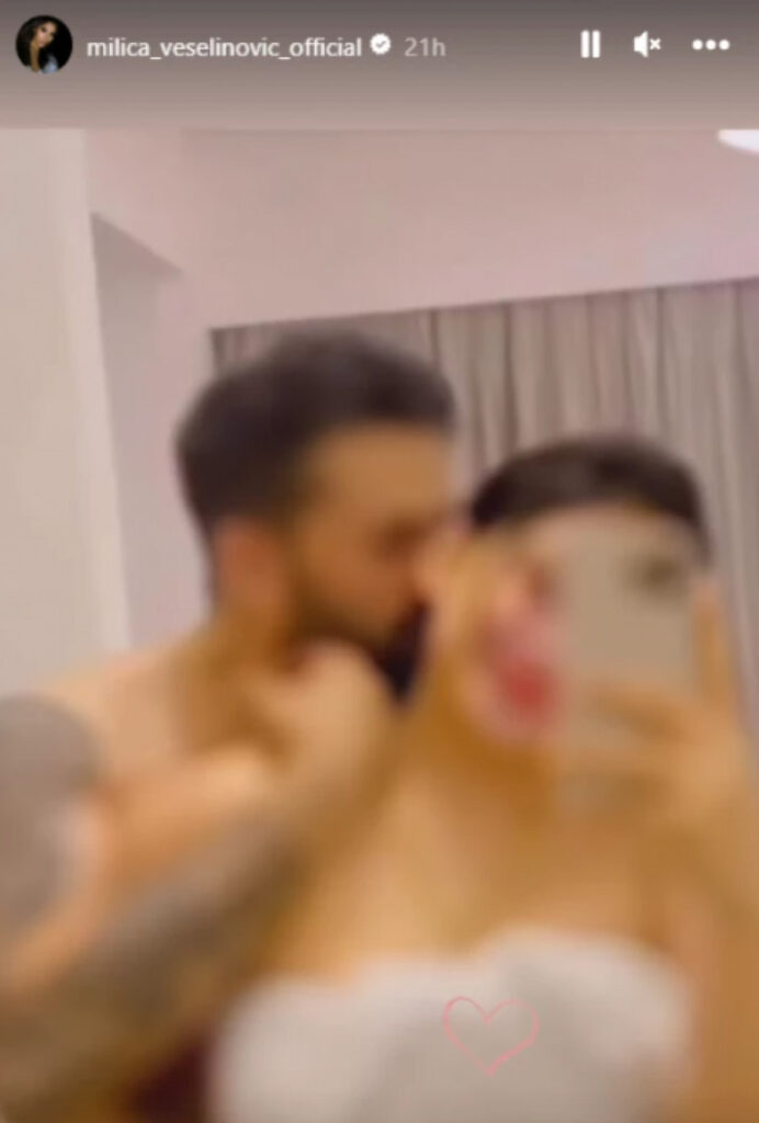 Na fotografiji je on golišav, dok je Milica prekrivena samo peškirom. On je ljubi po vratu, a fotografija je zamagljena kako se ne bi videlo ko je on. Milica je preko fotografije stavila emotikon srca.