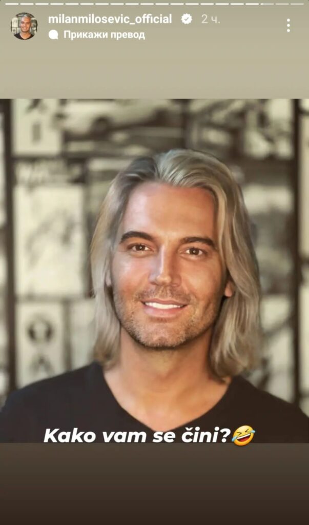 Na svom Instagram profilu na storiju, objavio je fotografiju sa izmenjenom frizurom, tačnije sa dugom plavom kosom do ramena.