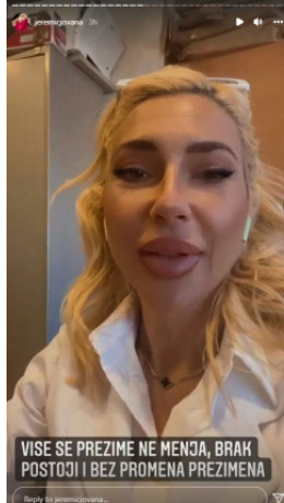 Naime, Jovana je na svom Instagram profilu priznala svojim pratiocima da je vratila devojačko prezime Jeremić i da ga više nikada neće menjati.