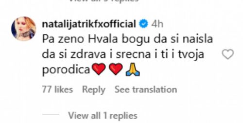 – Pa ženo, hvala Bogu da si našla da si zdrava i srećna, i ti i tvoja porodica – napisala je pevačica uz emotikone srca i ruke koje se mole.