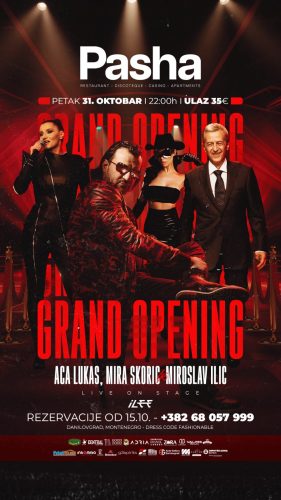 Tri velikana domaće muzičke scene, Aca Lukas, Mira Škorić i Miroslav Ilić udružiće snage na spektakularnom nastupu povodom velikog otvaranja novog luksuznog prostora 15. oktobra u Danilovgradu u Crnoj Gori.