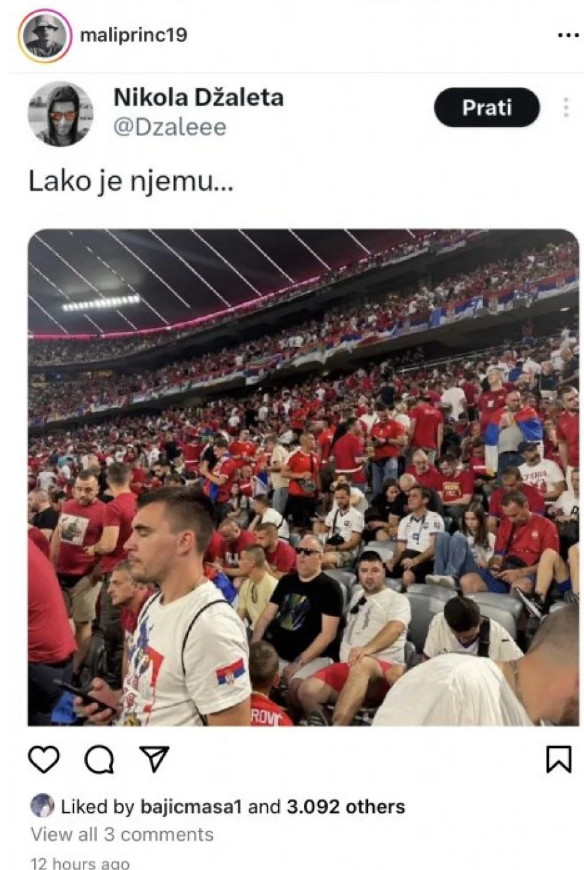 Pevač je sa svojom ekipom uslikan dok je navijao svim srcem, a na društvenim mrežama su počeli da se javljajnu sramotni komentari ljudi, koji su pod velom crnog humora pisali kako je njemu bilo „najlakše“, jer nije mogao da vidi kakva se utakmica odigrala.