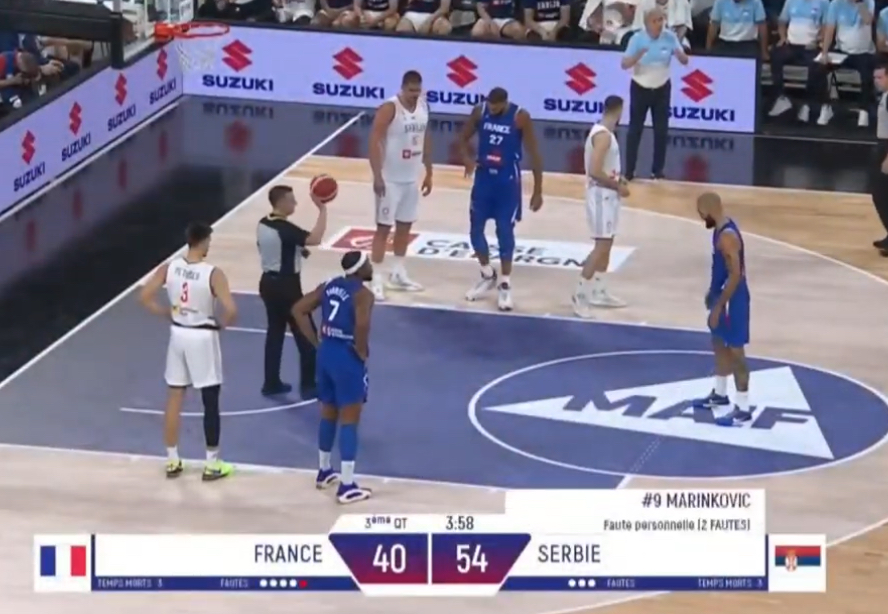 Poslednju četvrtinu su „Orlovi“ otvorili sa dva brza koša. Pa su Francuzi morali momentalno da traže tajm-aut, kako bi ostali u igri.