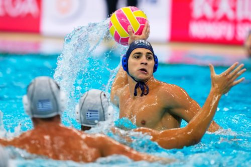 U najslabijoj igri na prvenstvu, „Heleni“ su očitali čas vaterpola olimpijskim šampionima i poništili sve dotadašnje dobre partije i rezultate Stevanovićevih izabranika. Kao i protiv Mađarske, nisu „Delfini“ ušli prema očekivanju u meč. To je Grčka iskoristila i držala vođstvo, ali su naši igrači golovima Strahinje Rašovića i Vasilija Martinovića uspeli da izbore nerešen rezultat u prvoj četvrtini (2:2).