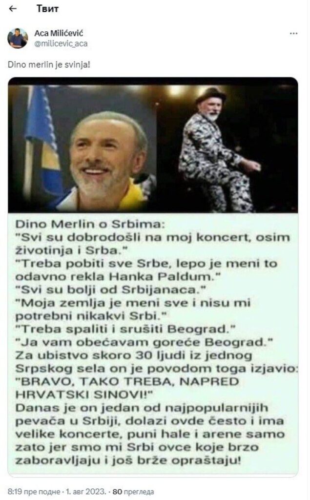 Prisetimo se, kako je Informer ranije pisao, publika ovih dana masovno čeka u redovima kako bi kupila karte za najavljene koncerte bosanskog pevača, koje koštaju od 3.000 do 15.000 dinara, a gotovo je izvesno da će Merlin prodati i četvrtu Arenu, pa će se u Sarajevo vratiti pun „srpskih para“, na koje očigledno nije ni najmanje gadljiv.
