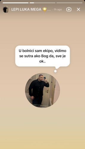 „U bolnici sam ekipo, vidimo se sutra ako Bog da, sve je okej...“, napisao je Luka, koji gotovo svako veče snima takozvane lajvove na Tiktoku i mečeve sa ostalim korisnicima.