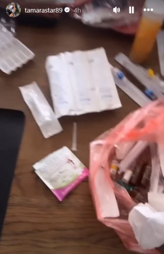 Naime, njen sto je bio prepun igala i špriceva, kao i raznih bočica u kojima je ona rekla da se nalaze razni vitamini.