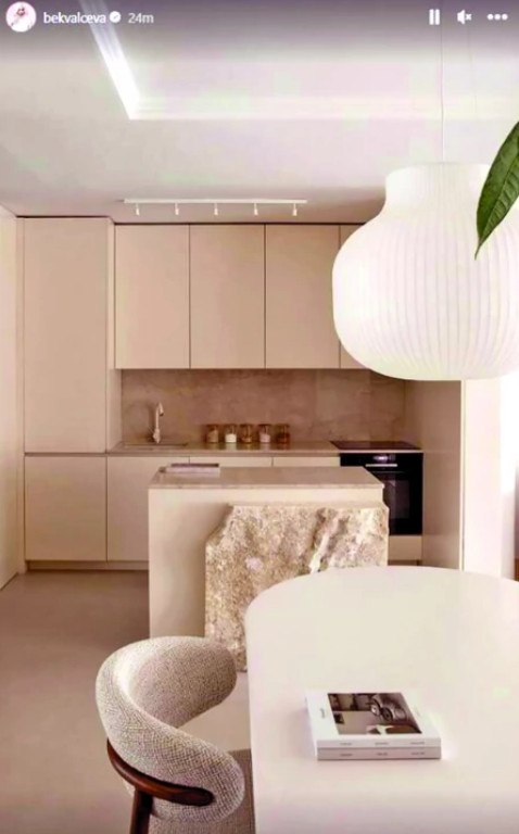 I kuhinja je odličan kutak za dobre fotografije, kada ga uređuje ova pevačica. Bekvalčeva obožava da kuva za naslednice i veliki deo slobodnog vremena provodi u kuhinji, kao prave domaćice. I u ovoj prostoriji dominiraju bele boje nameštaja, a sve je opremljeno neophodnom belom tehnikom dok je trpezarijski sto svakako prava zvezda stana.
