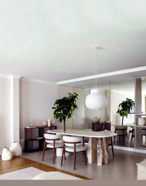 Viseći lusteri neobičnog oblika takođe doprinose lepoti enterijera ove prostorije, kao i brojni taburei, police, ogledalo i visoko cveće. Za razliku od drugih dama, koje bi sav novac potrošile na garderobu i asesoare, ona bi na dobar komad nameštaja.