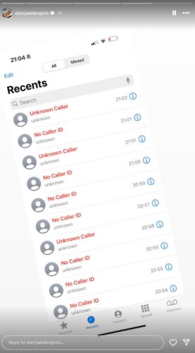 Naime, ona je sinoć na svom Instagram profilu objavila da je u večernjim satima neko manično zvao čak 10 puta uzastopno, ali sa sakrivenom identifikacijom.
