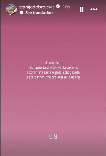 „Ja u ludilu…. I naravno da sam prihvatila poklon s obzirom šta sam sve prošla zbog idiota, a šta još trenutno prolazim al se ne zna….“, navela je Stanija, a svi su se zapitali da li pogrdnim imenom zapravo naziva svog bivšeg dečka, Asmina Durdžića. Ali kroz kakav pakao ona prolazi.