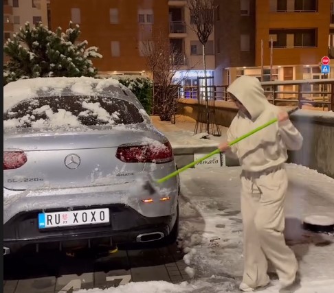 Ona je zasukala rukave, uzela metlu sa dugačkom drškom i krenula da čisti svoj zavejani četvorotočkaš. Stanija je samo u trenerci i sa osmehom na licu skidala sneg sa automobila, a ubro je snimak i podelila na društvene mreže.