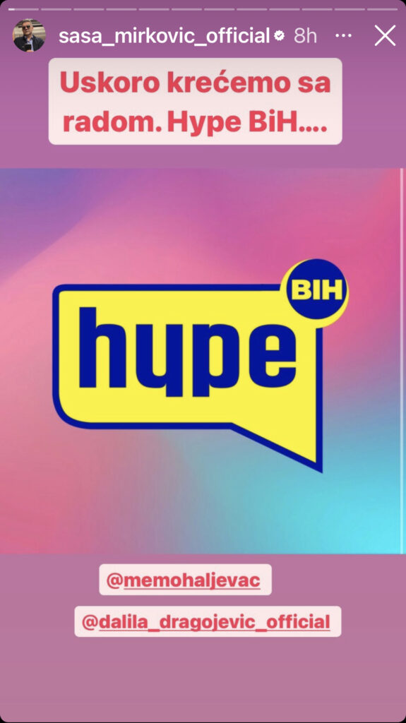 U njegovoj objavi se, pored Dalile Dragojević našao i poznati voditelj Memo Haljevac, te ne sumnjamo da će baš oni biti zaštitna lica „HYPE BiH“ televizije.