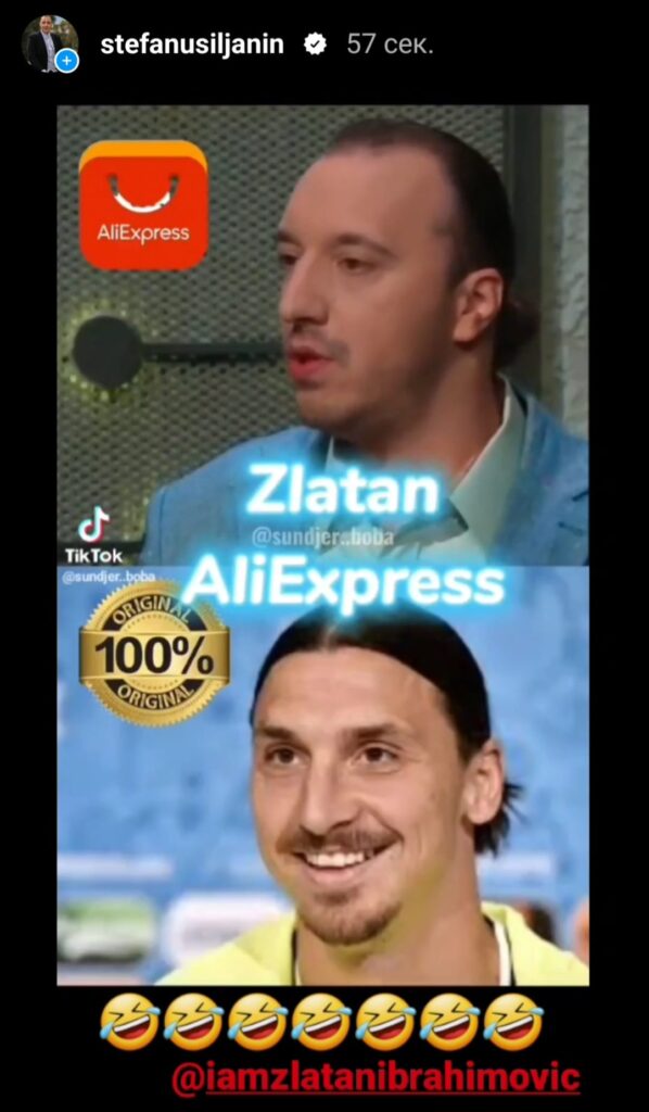 Na platformi TikTok pratioci su Okačili video iz Stefanove emisije „Pretres“, a ispod toga slike Zlatana Ibrahimovića pa se našalili i napisali: „Zlatan AliExpress“.
