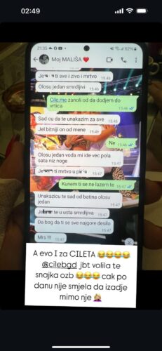 „Ološu jedan, voda mi ide već pola sata niz noge. J**em ti mrtvo u p**ku, smrdljiva. Dabogda ti se sve najgore dogodilo. Mrš!“, glasi Stefanina poruka.