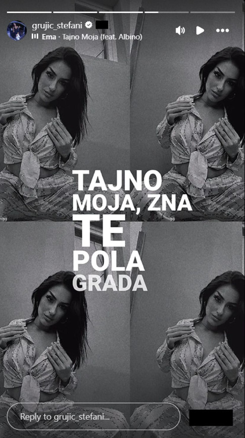 Stefani je danas dodatno dolila ulje na vatru kad je objavila stihove iz pesme Eme Radujko „Tajno moja“.