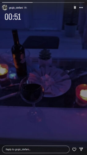 Podelila je fotografiju, a u kadru su sveće, čaša vina i tanjir sa delikatesima. Njena objava je izazvala lavinu komentara i burne reakcije. Fanovi komentarišu da je ovom fotografijom želela da isprovocira reakciju bivše partnerke Matore.